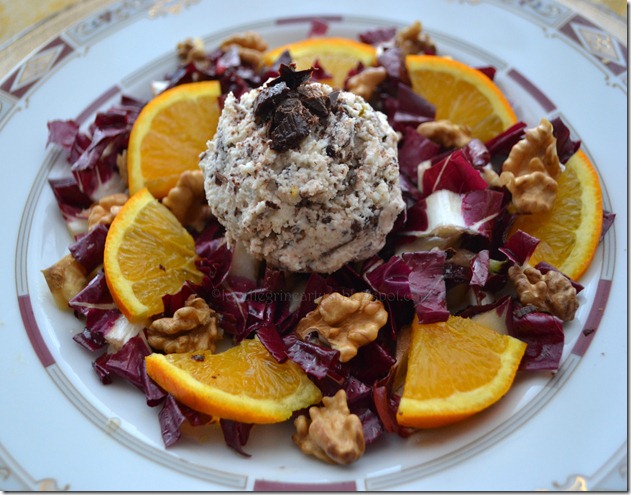 Un post con un’idea per un antipasto un po’ diverso dal solito che stupirà i vostri ospiti in modo piacevole, un gelato al parmigiano con delle scaglie di cioccolato fondente servito su un’insalatina di radicchio con arancia e noci. Noi abbiamo usato il cioccolato extra fondente al 70% della cioccolateria artigianale dei fratelli Gardini, un gusto ed un profumo irresistibile!